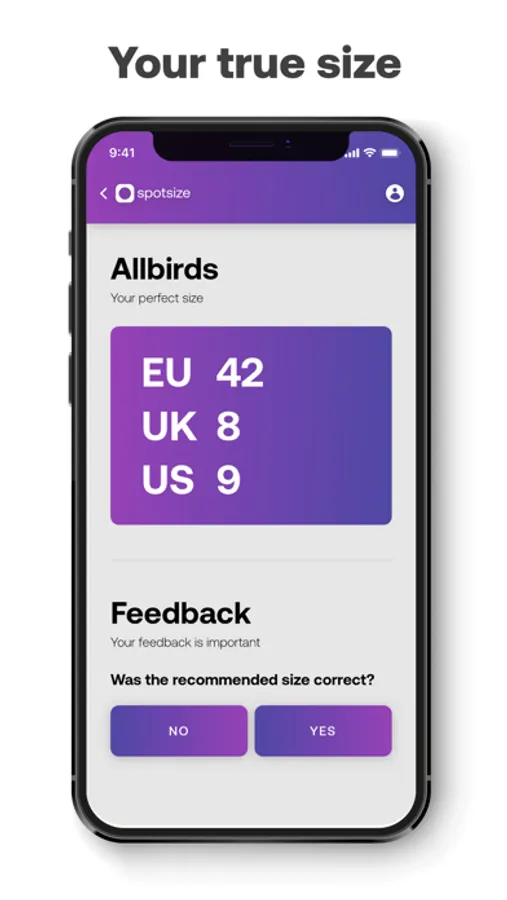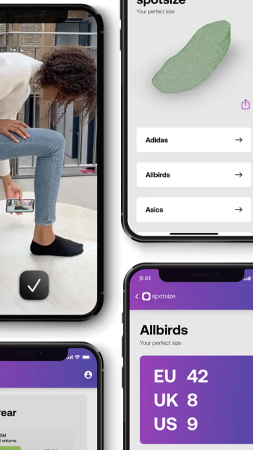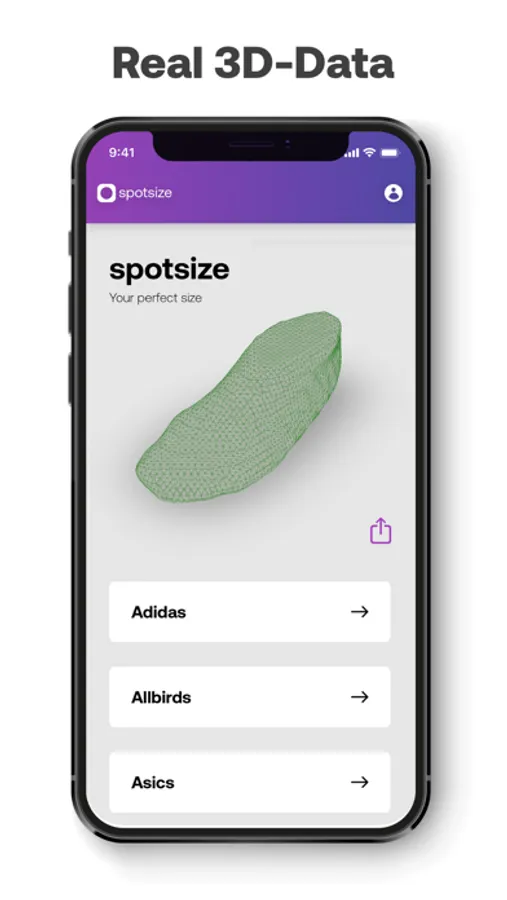 spotsize® is a size recommendation service that suggests the right shoe size to customers quickly, easily and reliably. With the help of artificial intelligence (AI), 3D sensor and augmented reality (AR) technologies, buying shoes becomes almost as easy as taking a selfie. The service can be seamlessly and conveniently integrated into the customer journey in an online store to enhance the buying experience and connect the online and offline worlds of brands.
