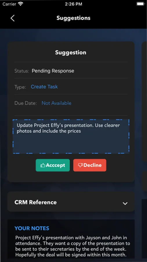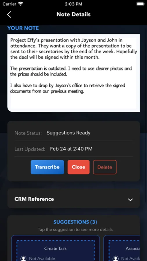 - Alima’s Intelligent Assistant interprets your voice notes into actions