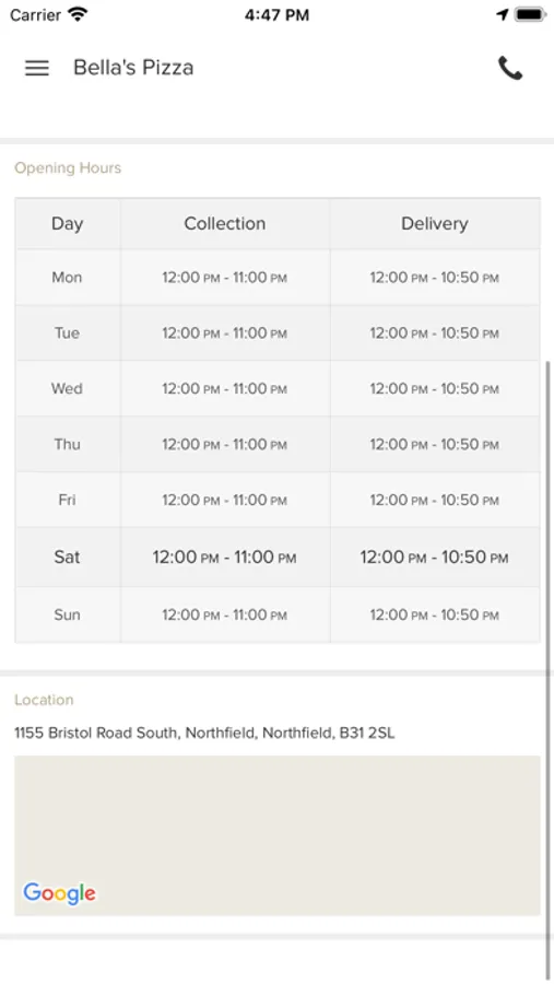 Order food online in Northfield! It's so easy to use, fast and convenient. Try our new, online app which contains our entire takeaway menu. The Bella's Pizza is located in Northfield. You can now order online, all your favourite dishes and many more delicious options, and have them delivered straight to your door in no time at all.