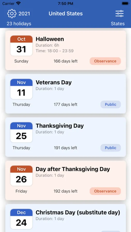 It helps you learn more about different holidays, festivals, and celebrations around the world. You can choose the countries, states and regions you want to start with.