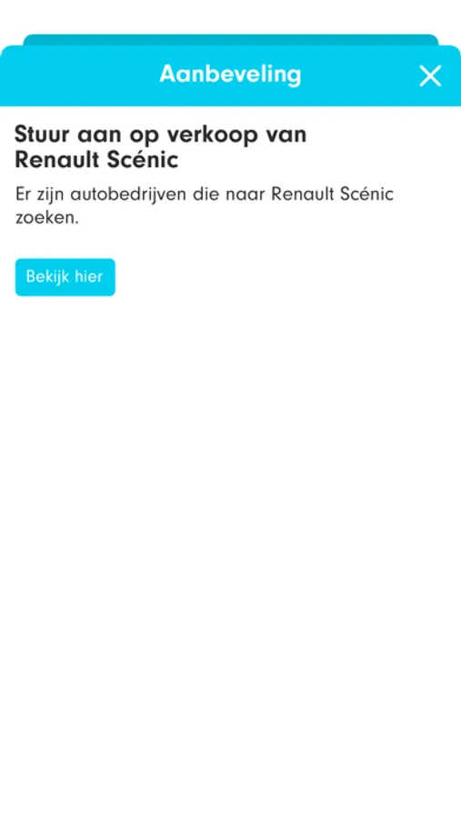 Uw ideale voorraadmix wordt vergeleken met andere vestigingen binnen uw dealerholding of met andere autobedrijven. Is er een match? Dan krijgt u een notificatie.