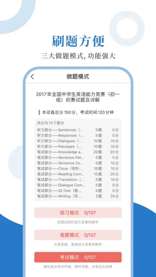 ①三大做题模式,适应不同需要;
