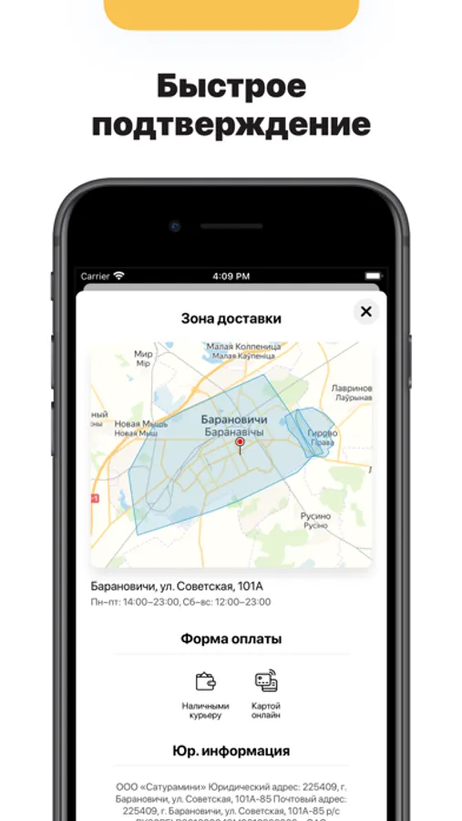 — Быстрый заказ с мгновенным подтверждением через приложение.