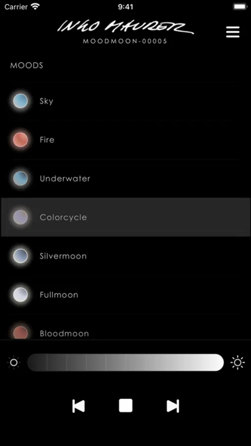Change the moods of the MOODMOON via the app according to your feeling: dim continuously and switch between the moods until you have set exactly the light colour that you like best. With the Ingo Maurer Digital app, MOODMOON is oriented towards people's personal needs.