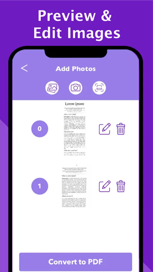 Take photos of documents or scan it then convert to pdf by one click. Choose from predefined Photo layouts. Convert jpg to pdf to easily print one or more photos on a page.Simple and intuitive interface makes PDF Photos the easiest JPG to PDF Converter