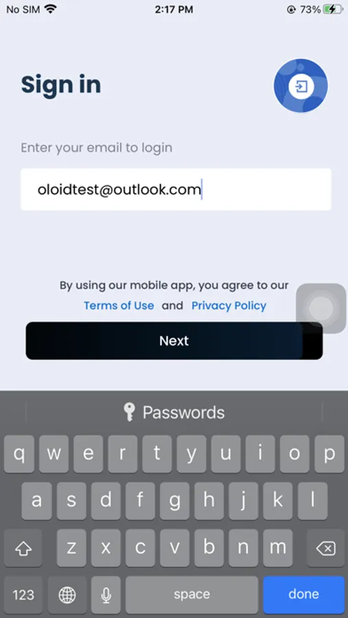 Use OloID App to Unlock the door with Oloid device using Bluetooth credentials.