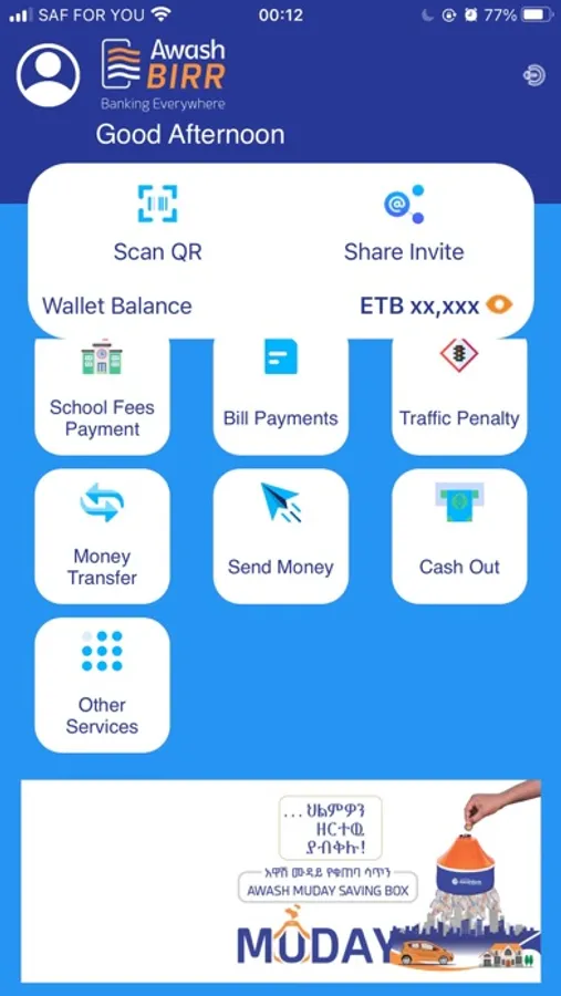 AwashBIRR app enables Awash customers to access to the below services