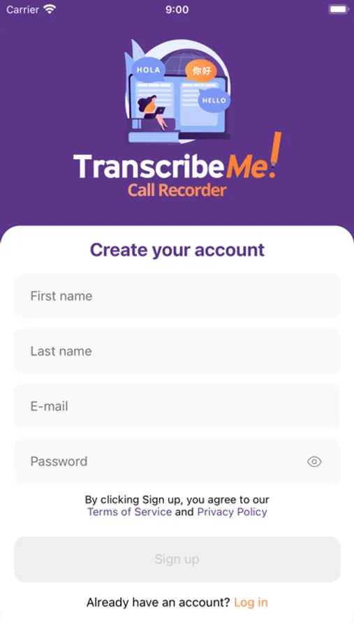 • Enter your billing details and confirm your order! Transcriptions are delivered straight to your email and available in-app or via your web browser.