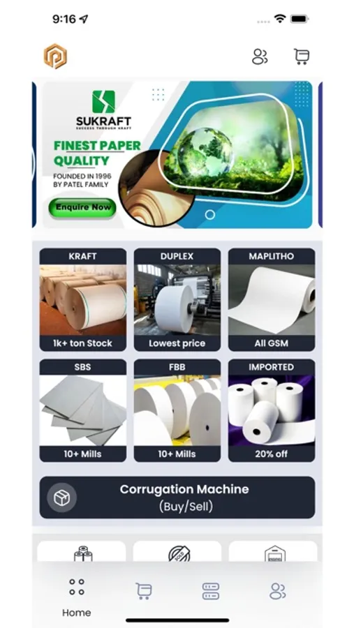 PaperEkart is a B2B Multi-Vendor Marketplace platform helping enterprises in procuring and selling different types of paper that includes kraft paper, duplex paper, maplitho paper, SBS paper, fbb paper, and imported paper along with used and new corrugation machines. This platform is designed to revolutionize the corrugated box industry by providing a virtual stockist platform for corrugators, paper mills, physical stockists and corrugation machine buyers and sellers.