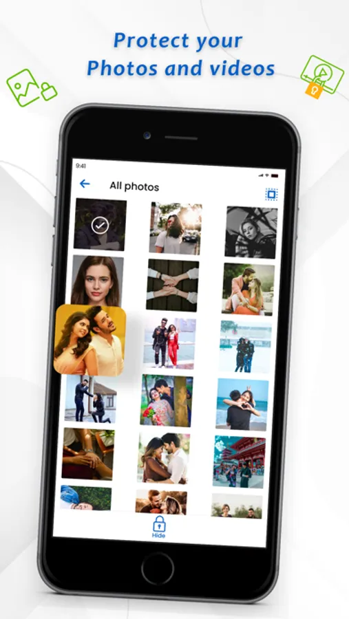 This Photo Gallery & Secure Vault is a best to secure app to hide your photos and hie your videos. It is A vault app for photos and videos. Using this app you can secure your private photos and videos. It is a Secret Photo Video Locker which can hide Private photo video lock. App is really good as photo lock and video lock with hide photo and hide video. Gallery Vault - Hide Pictures And Videos Gallery Vault app is a fantastic privacy protection app to easily hide and encrypt your photos, videos and any other files that you do not want others to see. Photo Gallery has the best editing tool to make your photos more attractive. The best alternative picture gallery, photo album and video player for your photos and videos.