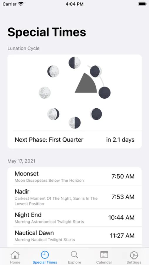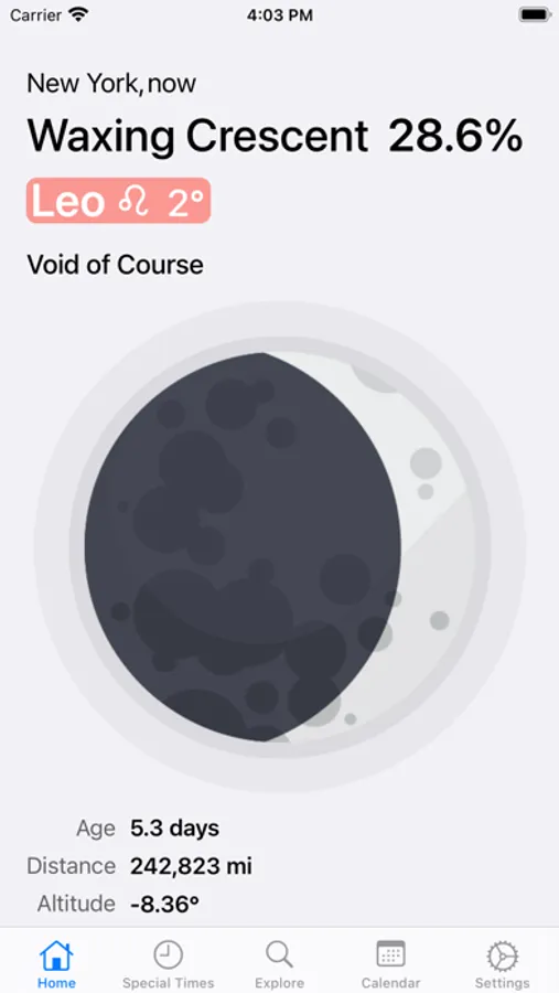 With its simple and stylish design, AstroMoon provides following data: