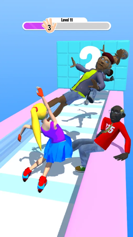 At the end, you have to tap as much as you can. So, you will get power related with your tapping. Finally, there is a fat man standing in the middle of the road. When you tap, she is getting power to make a perfect flying kick to fat man. She will hurl him as far as possible.
