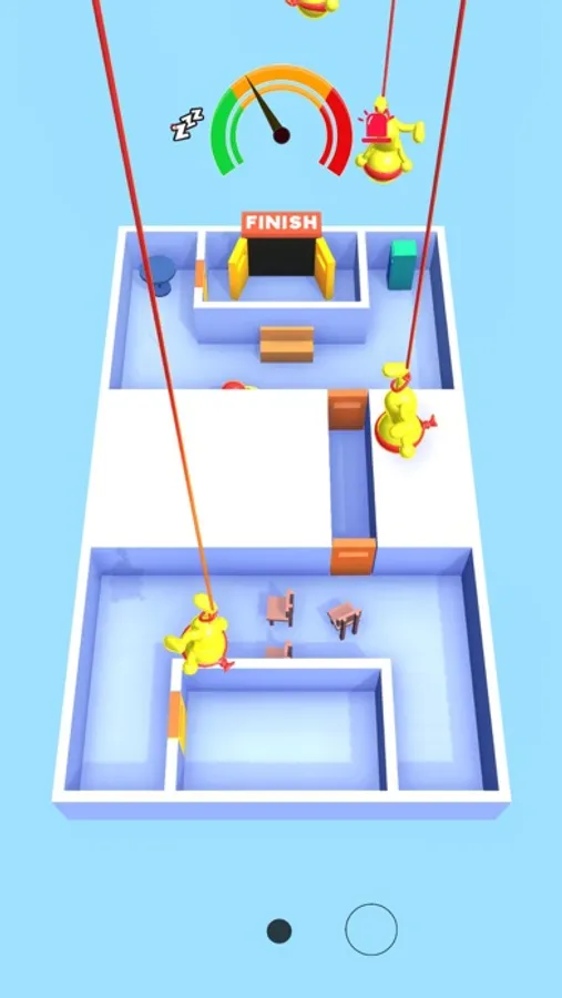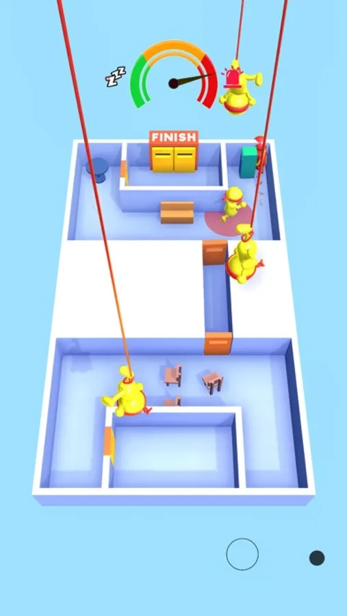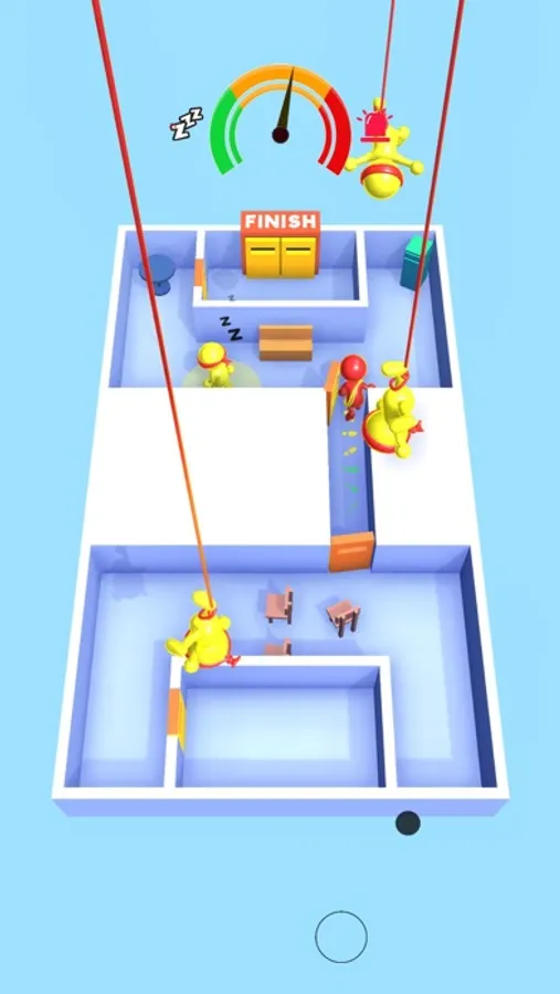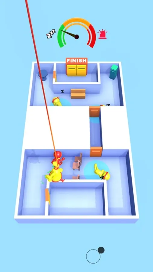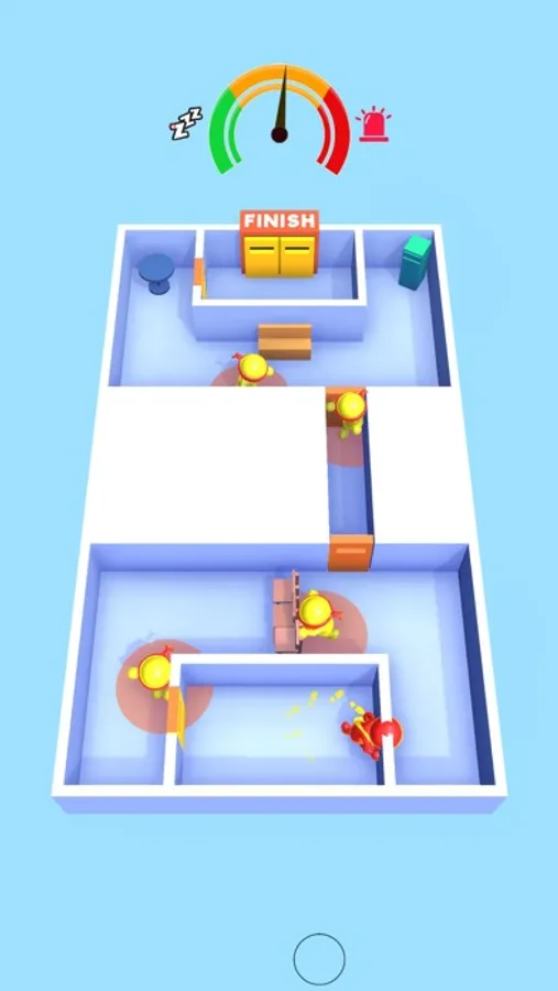 Your enemies are sleeping. You can take down all enemies by moving silently. If you make noise, they will all go after you.