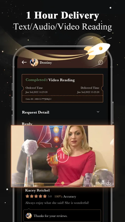 “Very fast at replying and is amazing! She is very generous and straight to the point. I will definitely continue going back to her for future readings.! Thank you!!” - From Maria Guerra