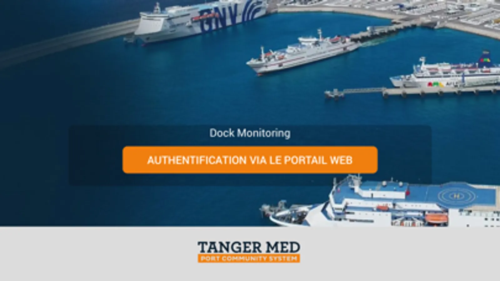 The "Dock Monitoring" mobile application is a Guide for internal users and external user of TMPA, and any user who wishes to have information on access to the port (Tanger Med Port Authority).