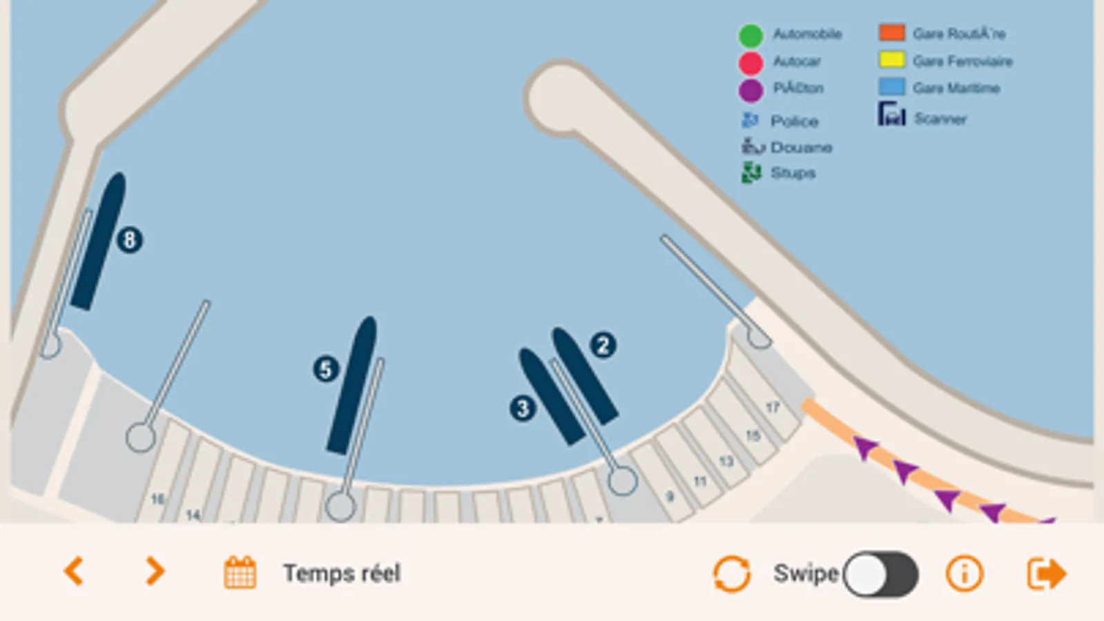 The application contains a port access plan, in the form of a MAP, users can see the available slots in real time or do a search for a given date.