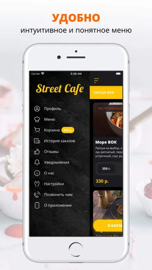 STREET CAFE— это что-то новенькое и интересное, а самое главное, индивидуальное кафе, которое будет Вас радовать низкими ценами и высоким качеством. С помощью мобильного приложения Вы всегда сможете оформлять заказы в пару кликов, а также будете в курсе всех акций, скидок и бонусов.