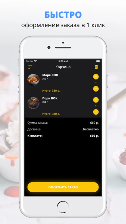 Скачивайте наше приложение, оформляйте заказ и наслаждайтесь любимой едой, где бы Вы ни были! Приятного аппетита!