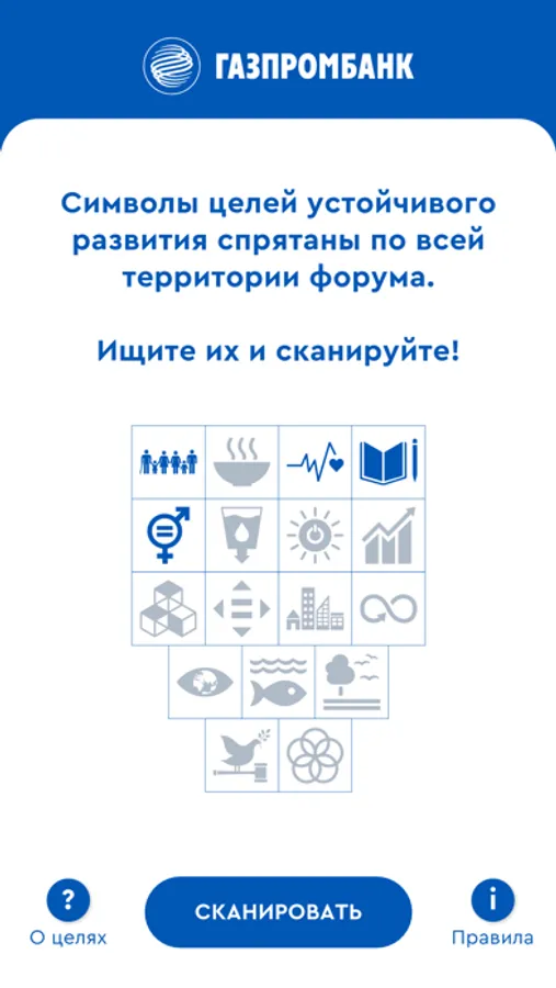 Квест от команды Газпромбанка. Пройдите его и получите полезные призы! Для этого необходимо собрать с помощью нашего приложения все метки, обозначающие Цели устойчивого развития ООН, которые размещены на территории конференции, и ответить на ряд тестовых вопросов. После сбора всех меток приходите на стенд Банка и получите свою награду! Заодно вы узнаете, какие ESG проекты реализует Банк и подробнее о политике в сфере устойчивого развития.