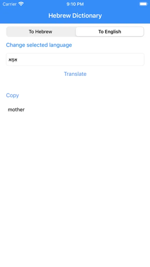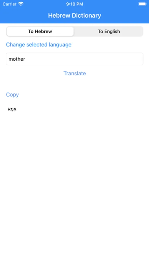 This app allows you to translate Hebrew to English or English to Hebrew languages. Not limited to a single word, you can translate multiple sentences into other language.