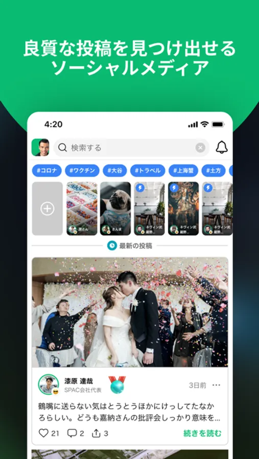 金融や経済の情報を教えてくれるAIキャラクターや、投稿の質が担保されるバッジシステムという仕組みによって、初心者から上級者まで投資を習うことができるプラットフォームです。