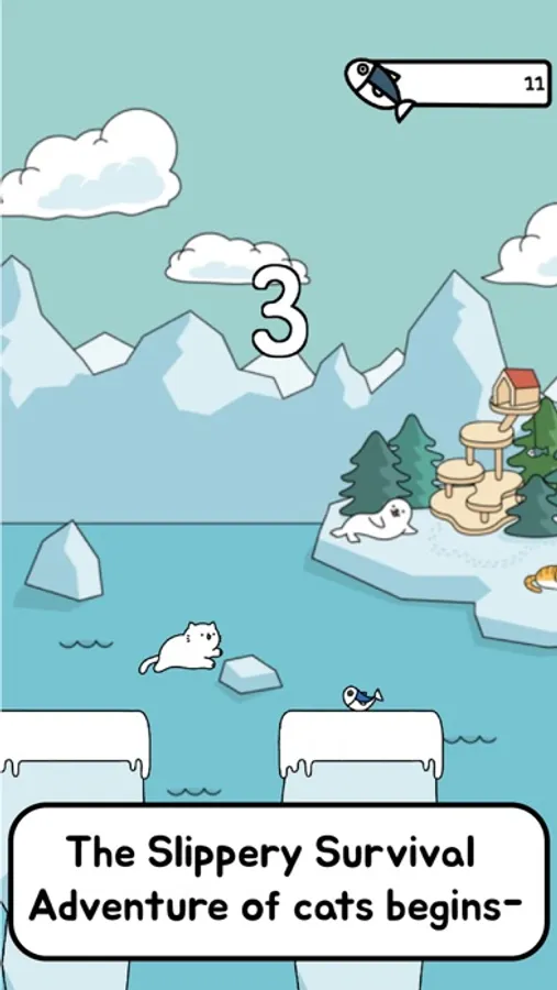The Nyantarctic cats have to escape jumping through the icebergs.