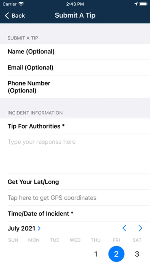 This app is not intended to be used to report emergency situations. Please call 911 in an emergency.