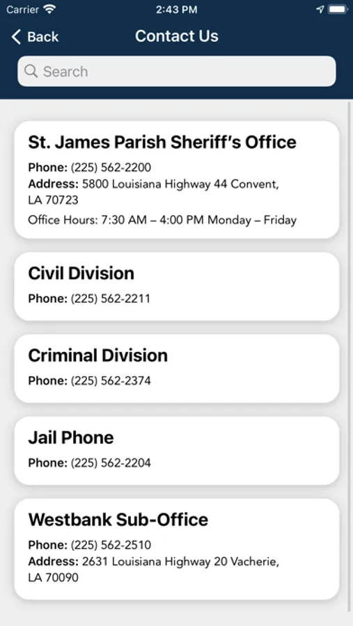 The St. James Parish Sheriff’s Office mobile application is an interactive app developed to help improve communication with area residents. The St. James Sheriff App allows residents to connect with the St. James Parish Sheriff’s Office by reporting crimes, submitting tips, and other interactive features, as well as providing the community the latest public safety news and information.
