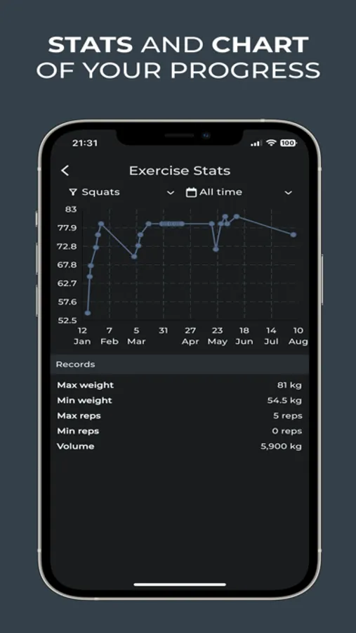 Our features include a rest timer, search exercises by muscle group and equipment, progressive overloading, display of RPE, exercise weight progress chart, cloud backup, comprehensive workout library, and a dark mode for an improved viewing experience.