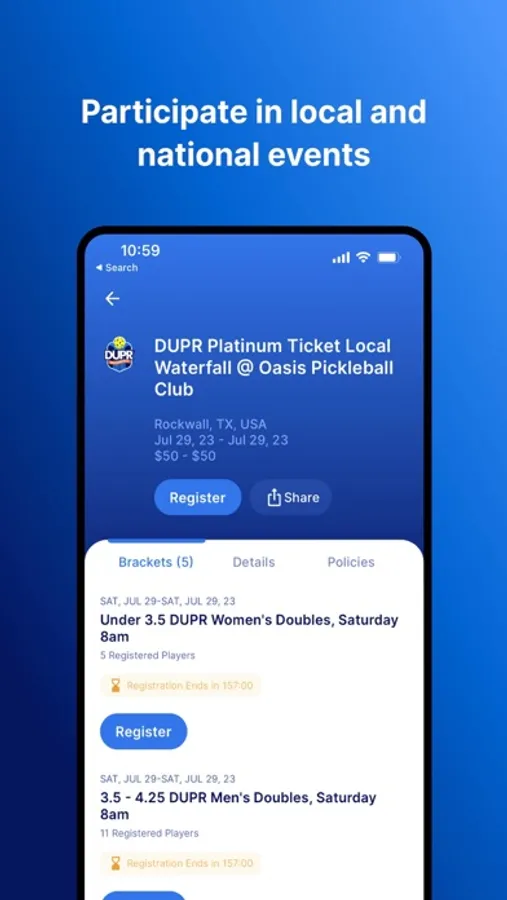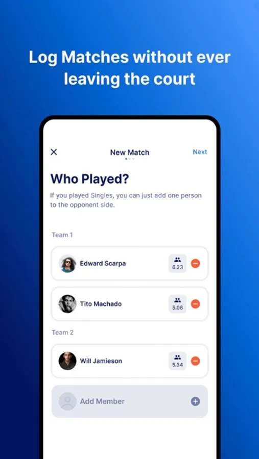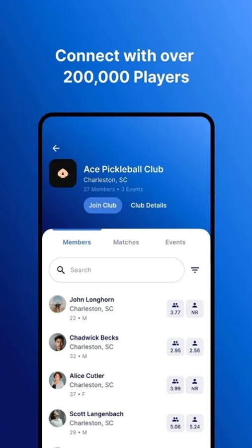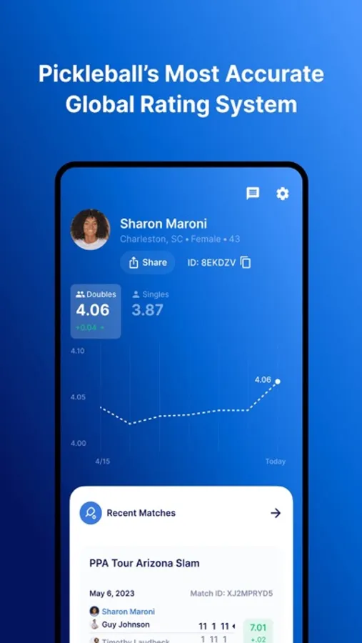 Browse DUPR user profiles - see the match history, ratings, and approximate location of potential opponents and teammates.