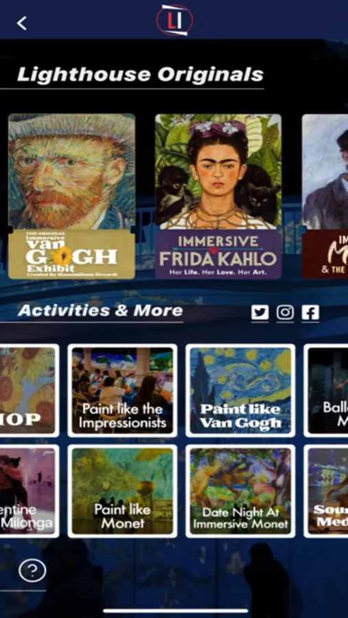 Following the blockbuster Immersive Van Gogh Exhibit, Lighthouse Immersive has become the leading producer of immersive experiences in North America. Lighthouse ArtSpace venues can be found in major cities, showcasing state-of-the-art video mapping technology that immerses you in art, music, and more. The Lighthouse Immersive app provides additional information on exhibits and experiences. From audio guides to behind-the-scenes info, and fun facts, and more, take your visit to the next level with the Lighthouse Immersive app.