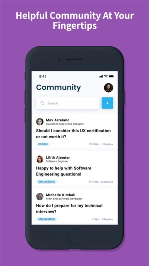 Forget lengthy articles that don’t make any sense. Short, bite-sized, specific information that helps you with whatever you need - choosing a career path, finding money for bootcamps, getting a job, getting that raise $$$. Oh and you can always post your own questions and get help from our community of career coaches, mentors, and people like you!
