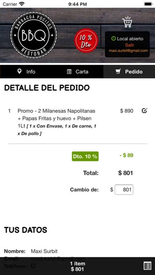 Con esta aplicación podrás realizar tus pedidos online de manera fácil, segura y