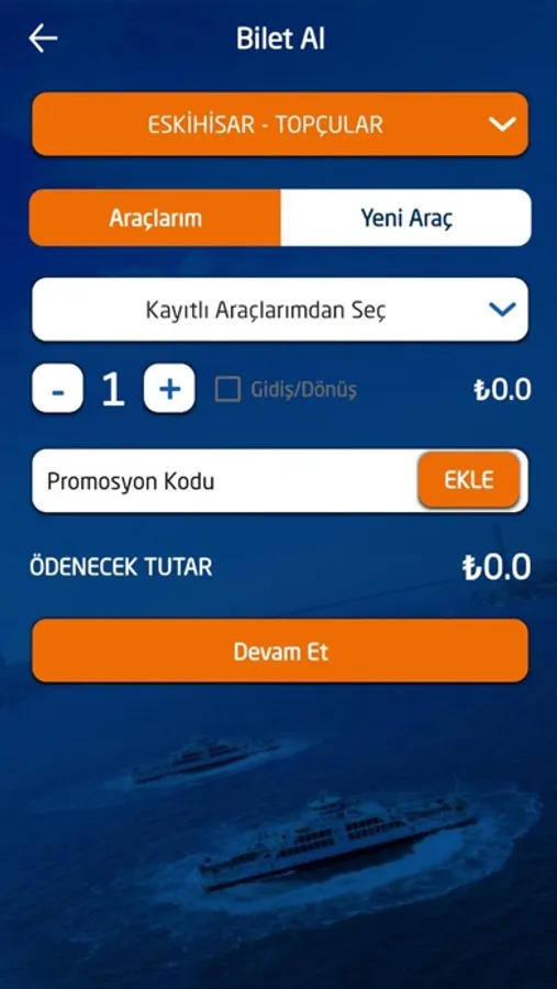 Eskihisar-Topçular ve Sirkeci-Harem hattındaki arabalı vapur seferlerimize biletlerinizi bir tıkla uygulamamız üzerinden alarak , gişede beklemeden istediğiniz gün ve saatte seyahat edebilirsiniz.