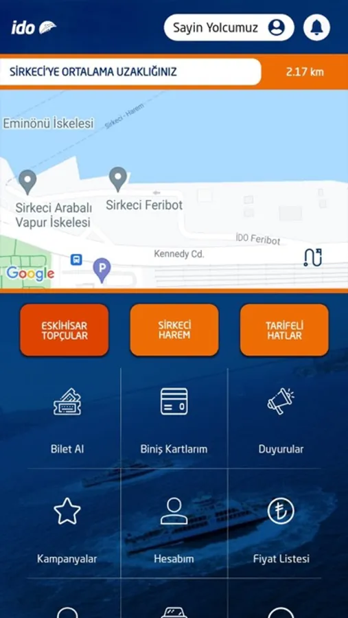 Uygulamamıza giriş yaptığınız anda bulunduğunuz konumdan en yakın iskelemize olan mesafenizi görebilir, yaklaşık olarak kaç dakikada terminalimize ulaşabileceğinizin en doğru bilgisini görerek rotanızı belirleyebilirsiniz.