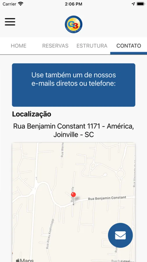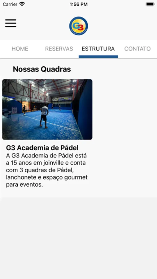 Confira pelo app nossas informações de estrutura, localização e contato com o centro esportivo.