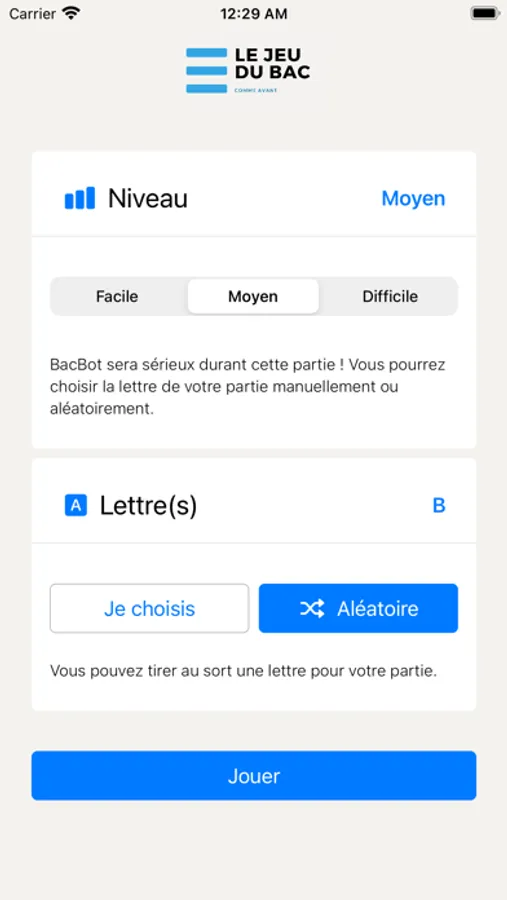 2. Choisissez votre lettre, ou une lettre par catégorie en fonction du mode choisi.