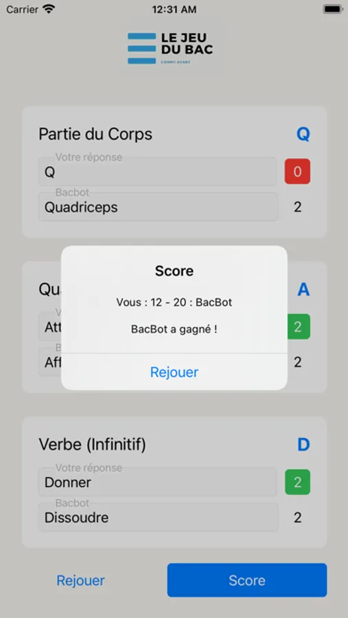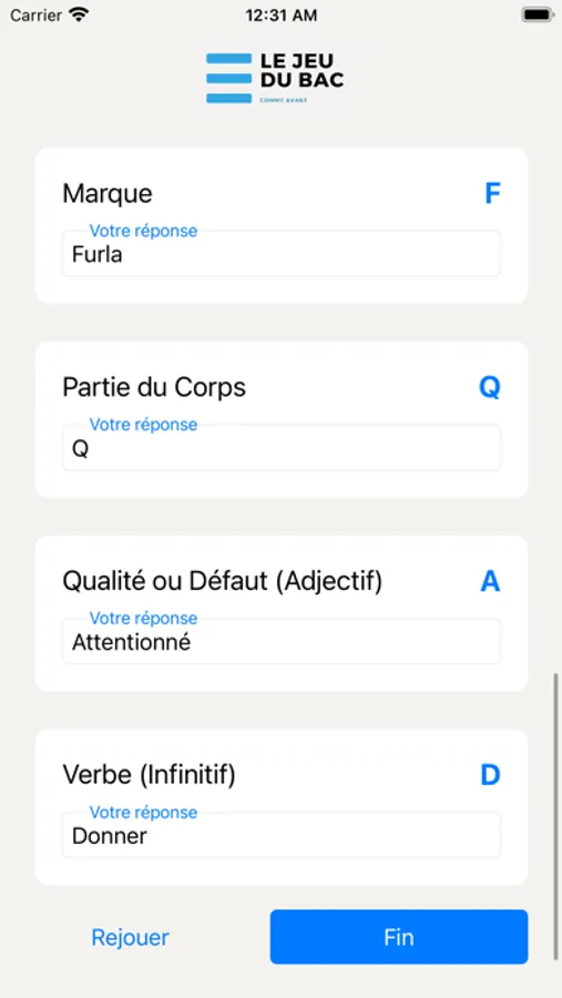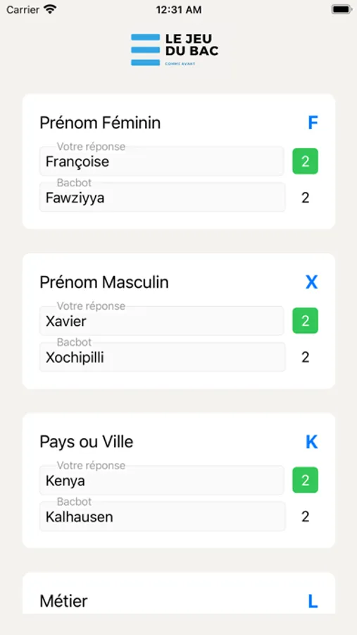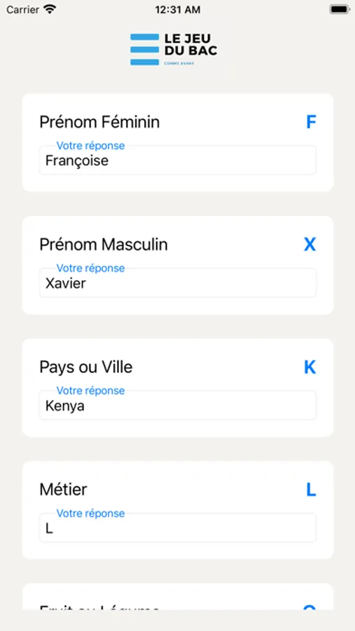 Vous souvenez-vous du "Jeu du Baccalauréat" ou "Petit Bac" ? Retombez en enfance et mettez-vous au défi avec ce jeu gratuit.