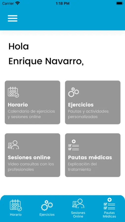A través de esta app el paciente podrá conocer el calendario semanal de sus sesiones de neurorehabilitación, acceder a las sesiones online con terapeutas, ver los ejercicios y pautas de su plan de tratamiento y sus pautas médicas.