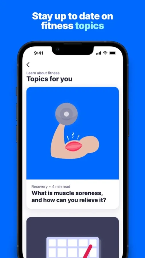 ■ Stay up to date on important fitness topics like recovery, injury prevention, and workout techniques in concise, easy-to-read articles.