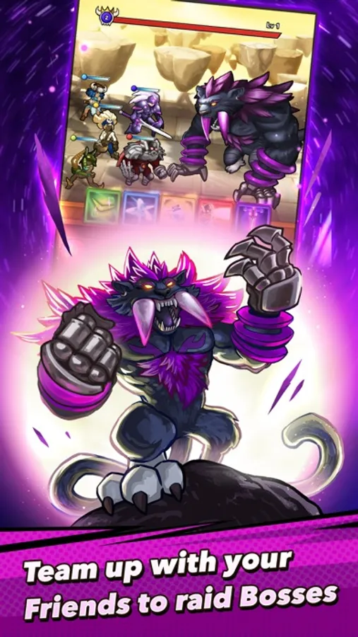 Collect over seventy heroes from five unique elements! Gain experience and rewards while AFK!