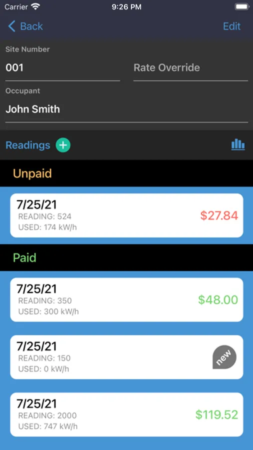 Meter Reader helps campground owners track electricity usage in their park on a per-site basis. Easily change site and occupant details, rates, reading notifications, and more. You can also view usage graphs and reset reading periods if occupants change mid-cycle.