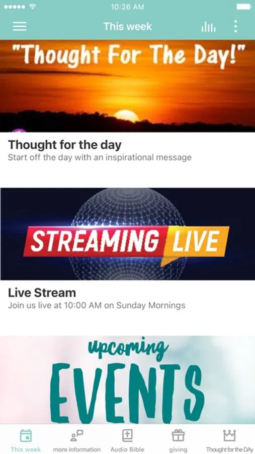 This app will help you stay connected with the day-to-day life of our church. With this app you can: watch or listen to past messages; stay up to date with push notifications; share your favorite messages via Facebook, or email; and download messages for offline listening. Enjoy past sermons, inspirational music, notices of opportunities to be involved and much more.