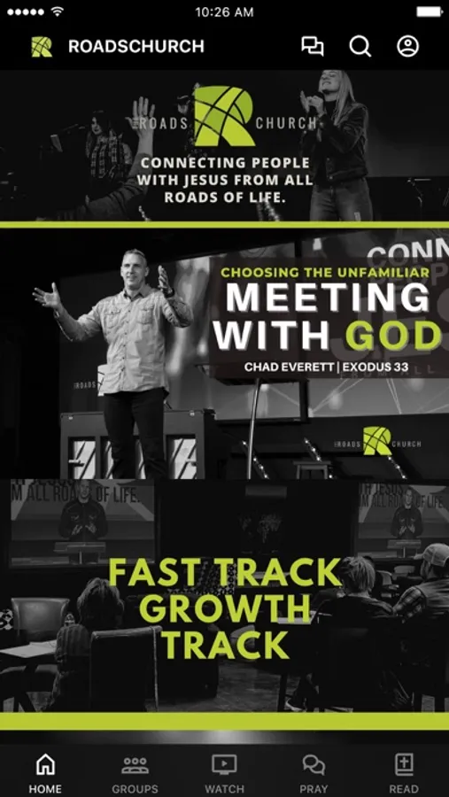 This app will help you stay connected with the day-to-day life of The Roads Church. With this app you can: watch or listen to past messages; stay up to date with push notifications; share your favorite sermons, testimonies and Roads worship via Facebook, or email; and download messages for offline listening. You'll be able to sign up for a Roads Group, manage your tithe, read the Bible and take notes.