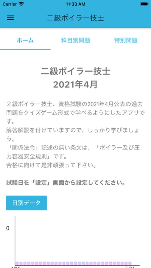 2級ボイラー技士、 資格試験の201年4月公表の過去問題をクイズゲーム形式で学べるようにしたアプリです。