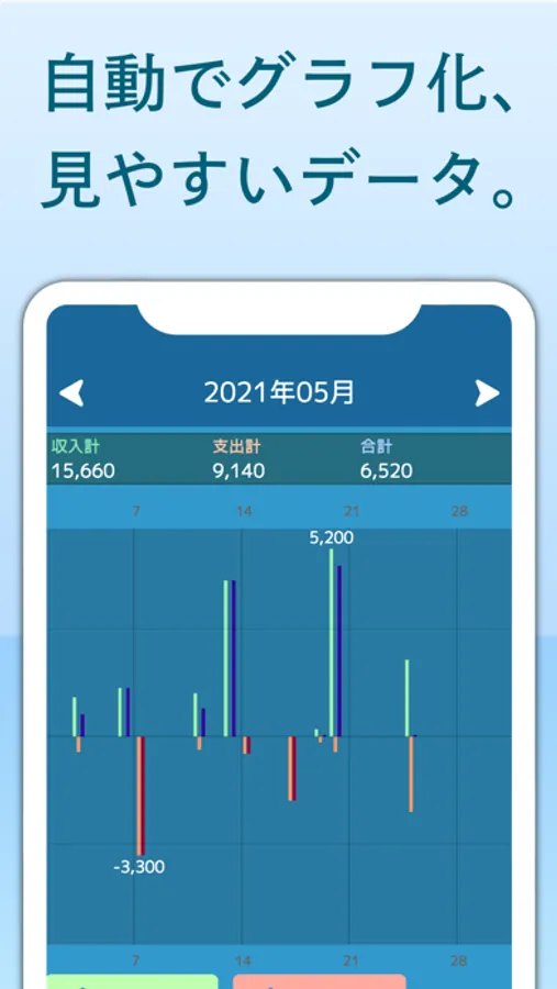細かい入力は不要で、まずは試しに日々の収入と支出だけ記録を始めてみたい、という方に最適です。