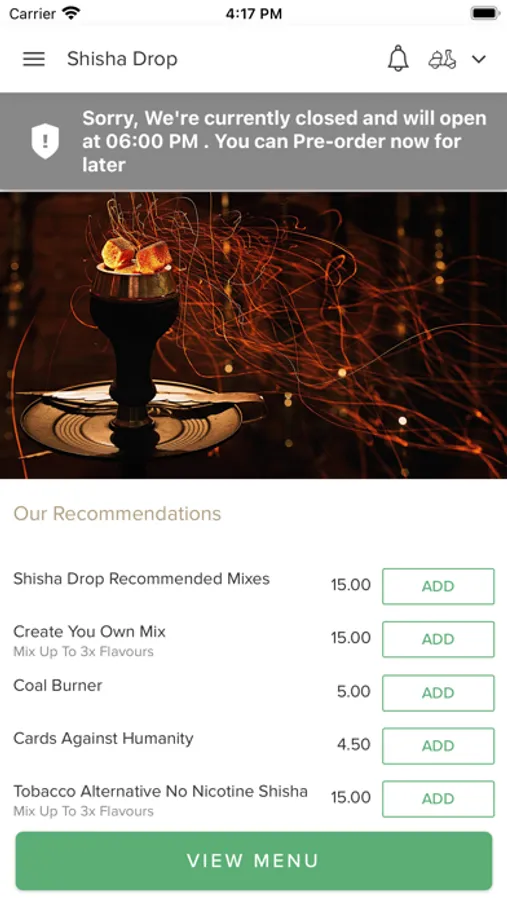Order food online in Mere Road! It's so easy to use, fast and convenient. Try our new, online website which contains our entire takeaway menu.You can now order online, all your favourite dishes and many more delicious options, and have them delivered straight to your door in no time at all.Thank you for visiting Shisha Drop in Mere RoadWe hope you enjoy our online ordering website and your food