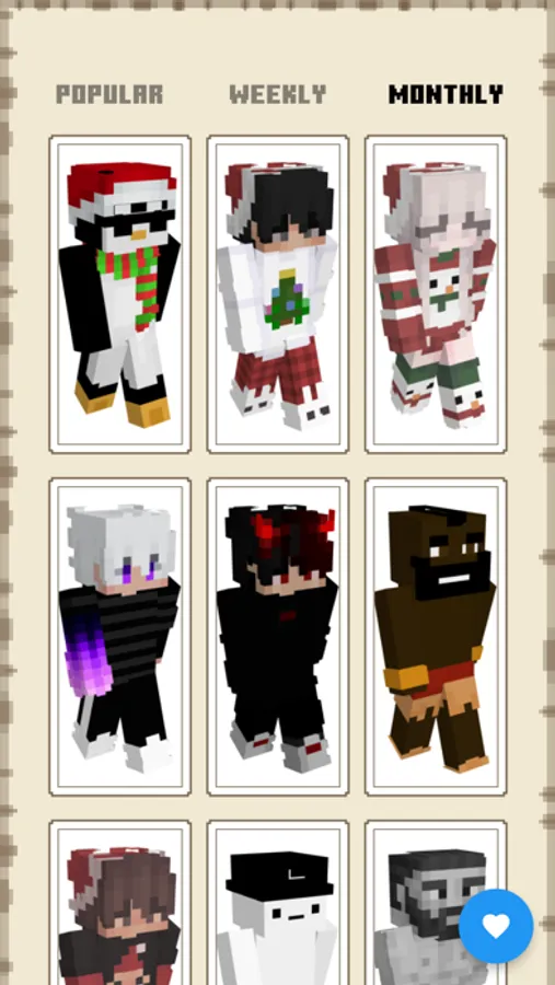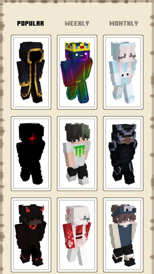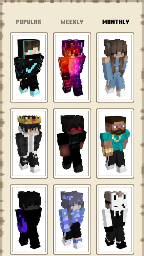 • Popular Minecraft skins updated frequently in 24 hours. Everyone likes new skins.