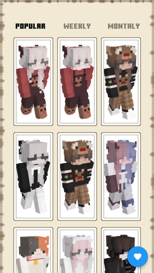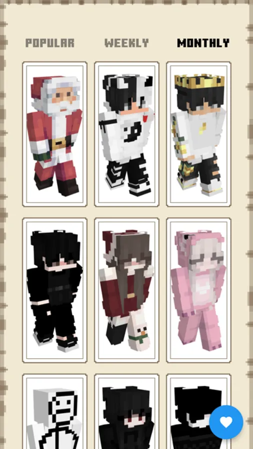 • Popular Minecraft skins updated frequently in 24 hours. Everyone likes new skins.