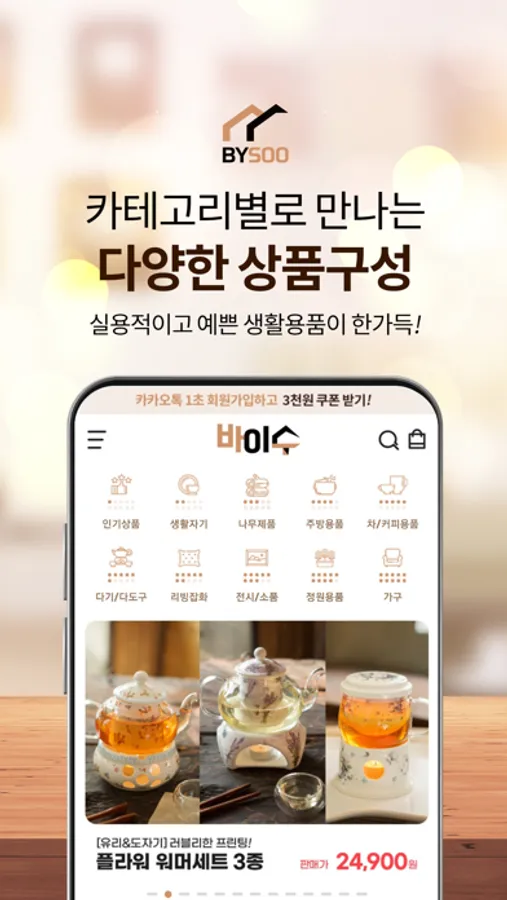 주방용품, 생활용품, 인테리어 소품, 그릇세트, 생활자기, 머그잔, 찻잔, 다기, 캔들, 조화, 화병, 라탄, 바구니, 피규어 등